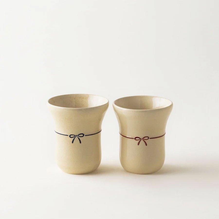黄釉リボンカップペア(青・赤)[キユウリボンカップペア]