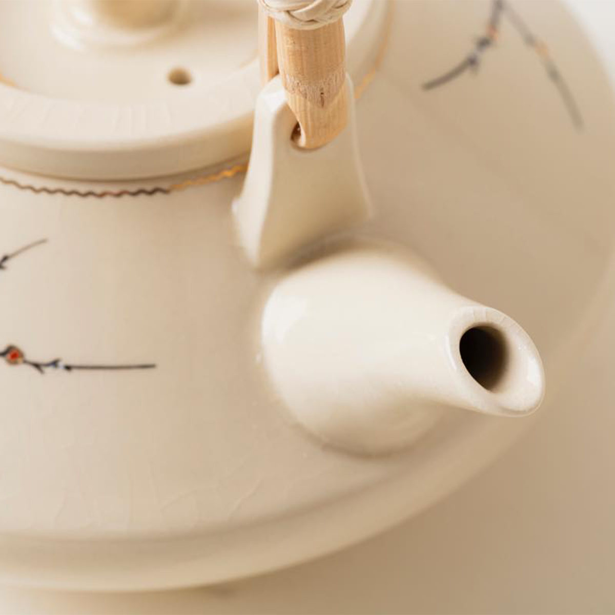 - 陶土には吸水性、吸臭性があるため、素地に浸透した茶のタンニンが貫入に入り、器の釉色に変化をもたらします。