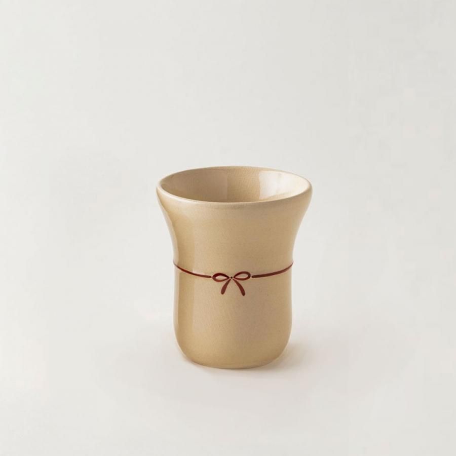 黄釉リボンカップ(赤)[キユウリボンカップ]