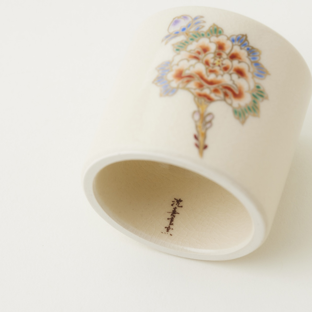 白薩摩蓋置(筒型) 牡丹[シロサツマフタオキ(ツツガタ) ボタン]